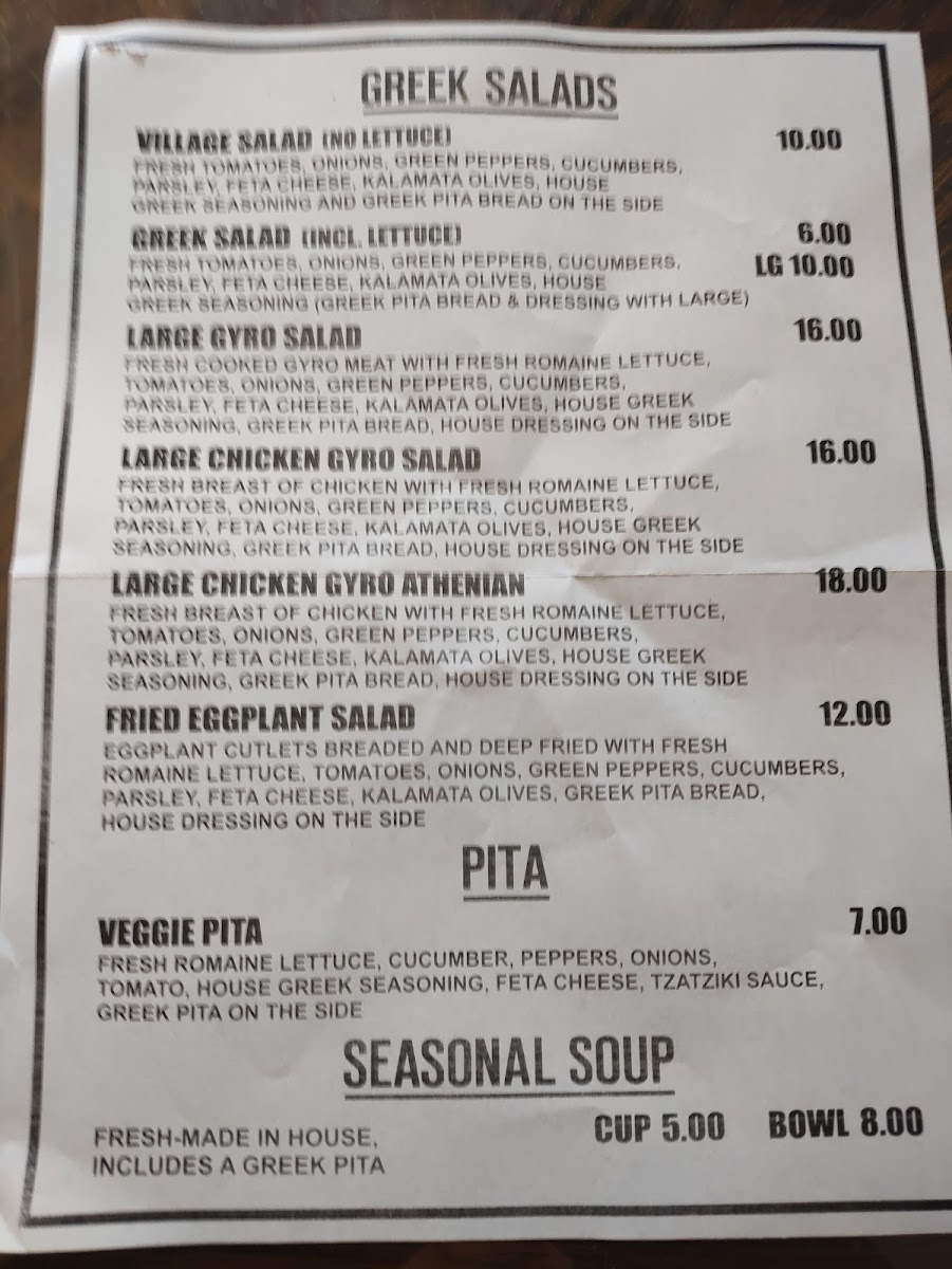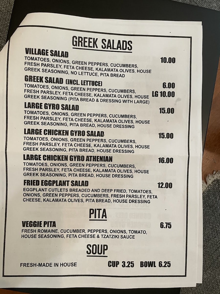 For a complete feast, try one of the Platters, such as the Original Greek Gyro, Chicken Gyro, or Athenian Chicken, served with sides that complement the main dish perfectly. If you're after something a little lighter, the Veggie Pita is an excellent choice, packed with fresh vegetables.